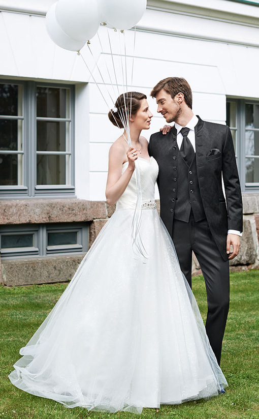 Na ostateczną decyzję powinien mieć wpływ wygląd sukni ślubnej, tak, aby razem ze strojem pana młodego współgrały ze sobą pod względem stylu i koloru. Jeśli suknia będzie biała, garnitur powinien być czarny, szary lub stalowy, w przypadku sukni ecru, lepiej zdecydować się na cieplejszy odcień – np. czekoladowy.