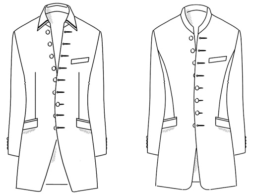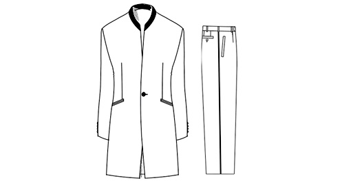 Garnitur może być jedno lub dwurzędowy, z kamizelką lub bez, zapinany wysoko lub nisko. Marynarka powinna sięgać poniżej pupy, a rękawy nawet przy wyciągniętych rękach do nadgarstka. Mankiet koszuli musi odrobinę wystawać. Spodnie mogą mieć prosty krój, lub mogą być marszczone w pasie. Nogawka spodni powinna spoczywać lekko na bucie. Obcas buta musi być w połowie zakryty.
