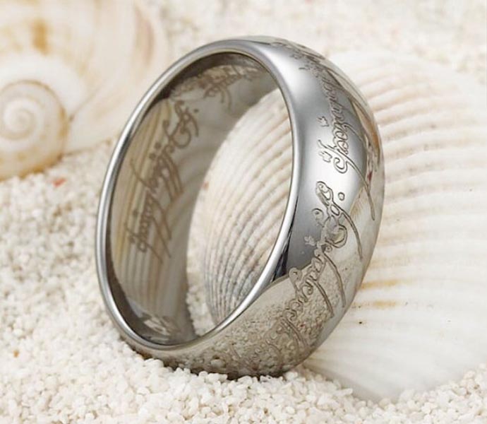 Obrączka z elficką sentencją dziś jednoznacznie kojarzy nam się z Władcą Pierścienia. Bardzo romantyczna opcja, przy czym pojęcia nie mam czy na potrzeby fantastyki ktoś pokusił się o stworzenie języka elfickiego… Ale czy to ważne?