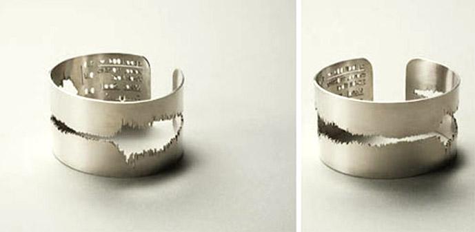 Japoński artysta grafik Sakurako Shimizu tworzy niepowtarzalne grawerowane obrączki jako część jego serii Fale dźwiękowe. Ślubne „TAK” są cięte laserowo i renderowane, a efekt jest naprawdę jedyny w swoim rodzaju.