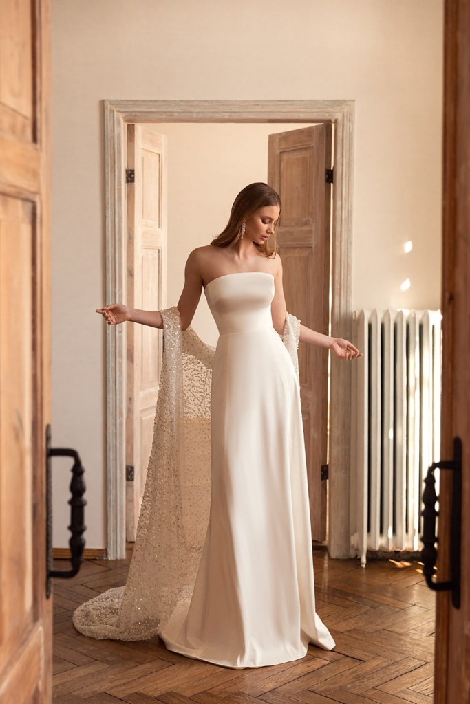 Suknia ślubna z dekoltem zabudowanym i ze stójką