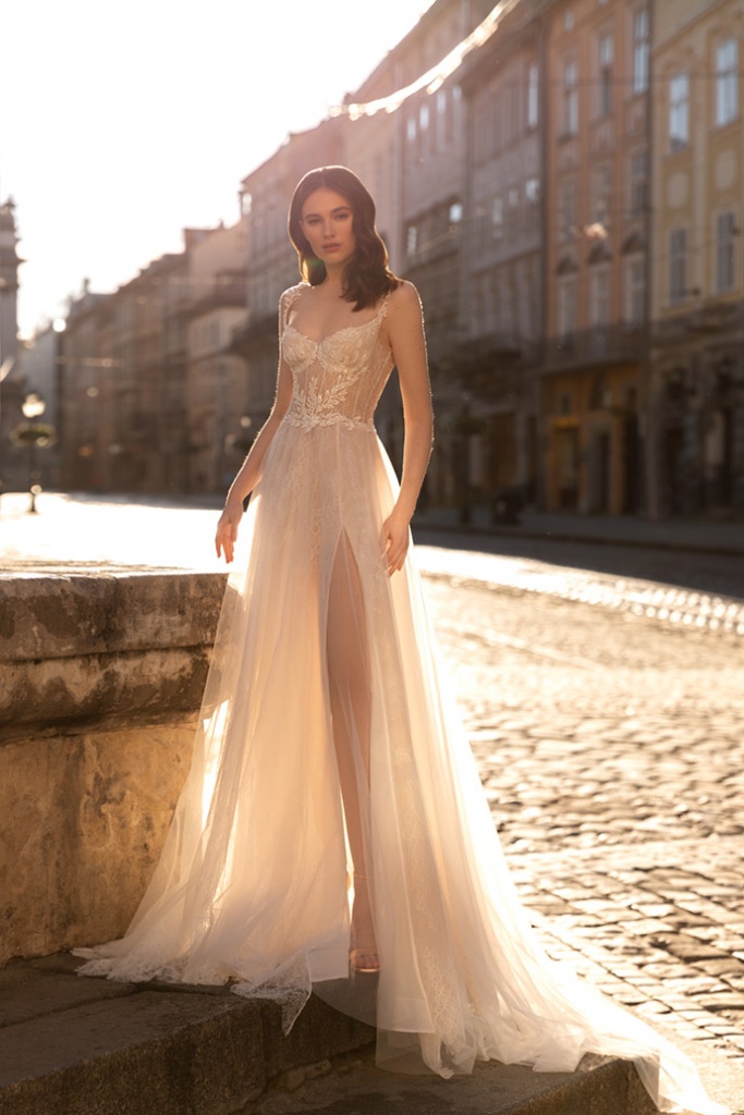 To model mocno taliowany, polecany dziewczynom z ładnym wcięciem w talii. Ale także tym, które tego wcięcia za bardzo nie mają i chcą dzięki specjalnej konstrukcji gorsetu wymodelować biust i podkreślić talię. Princessa zatuszuje zarówno szerokie, jak i zbyt wąskie biodra. Pasuje właściwie paniom o każdym wzroście, ale może przytłoczyć swoją objętością te o bardzo drobnej sylwetce. Często modele z bardzo szeroką spódnicą występują w wersji z odkrytymi ramionami – panie o szerszych ramionach powinny więc wybrać model na przykład z koronkowymi rękawami, które nieco je zamaskuje.
