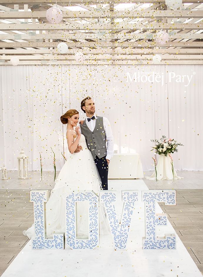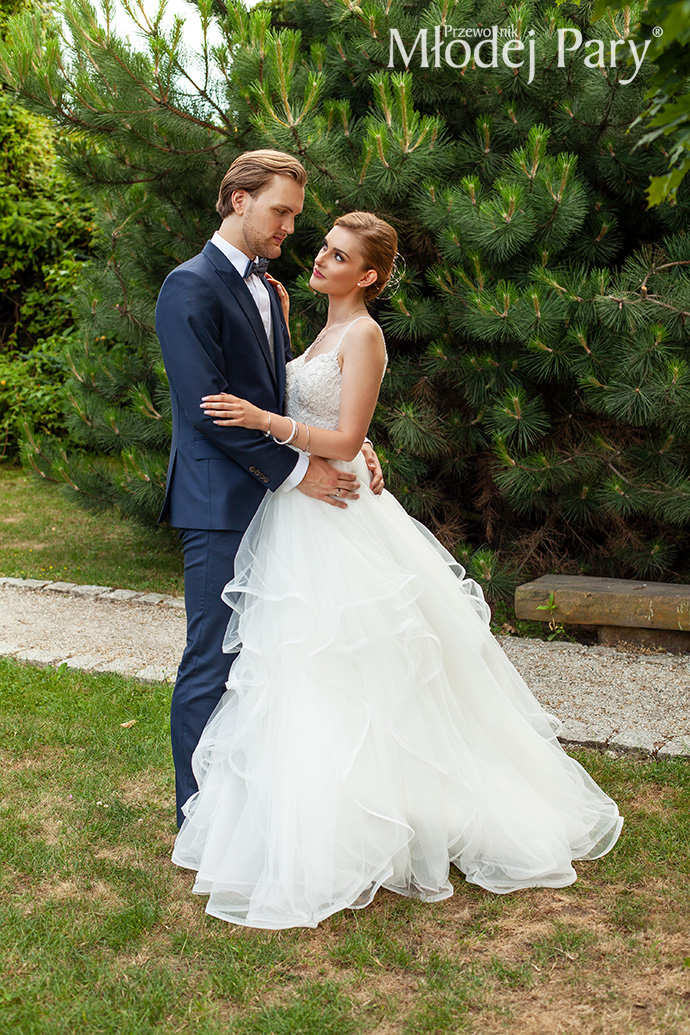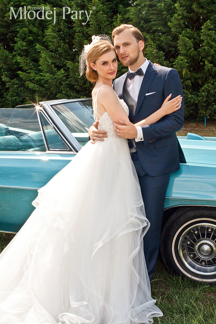 Wiele przyszłych panien młodych zachwyca się stylem boho, lecz kiedy przychodzi moment wyboru własnej stylizacji, decyduje się jednak na wersję bardziej klasyczną. Jak niewiele trzeba, by odmienić wizerunek poprzez inną fryzurę, sukienkę i dodatki, prawda? Pan młody elegancki, już w klasycznym niebieskim garniturze, który w tym roku nadal cieszy się niesłabnącym uznaniem wśród mężczyzn. Dla panny młodej subtelna biżuteria w stylu glamour, stylowe uczesanie wykończone fascynatorem i suknia ze spódnicą z asymetrycznymi falbanami – popularnymi od kilku sezonów.