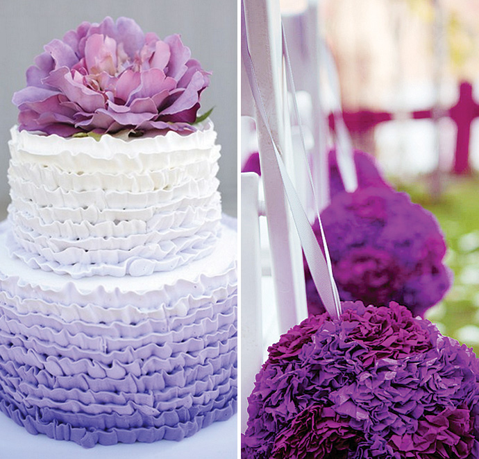 - GLAMOUR. Fiolet znakomicie odnajduje się w takiej konwencji. Doskonale komponuje się z bielą, czernią, szarością, srebrem i złotem. Złoto ociepla fiolet, srebro chłodzi, jeśli więc nie chcecie „zmrozić” gości ultrafioletem, dodajcie ciepłego różu lub soczystej zieleni.