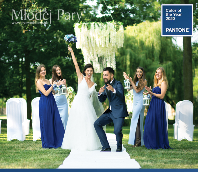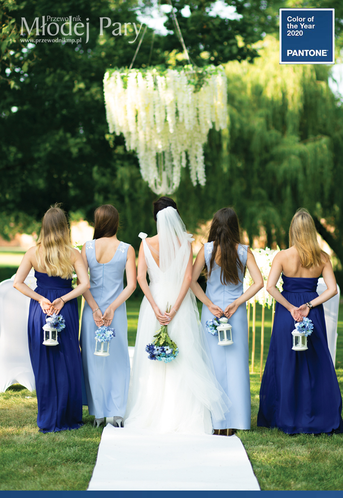 Niebieski będzie więc śmiało gościł w 2020 roku we wnętrzach, w dodatkach, ubraniach i dekoracjach. To świetna wiadomość dla tych, którzy wybiorą niebieski jako kolor przewodni wesela – czy to w detalach, czy jako dominantę i motyw przewodni w ślubnych bukietach i dekoracjach. Jako baza pięknie łączy się z innymi odcieniami niebieskiego, srebrem, złotem, bielą, kremem, zielenią i szarościami.