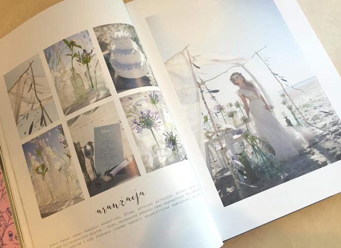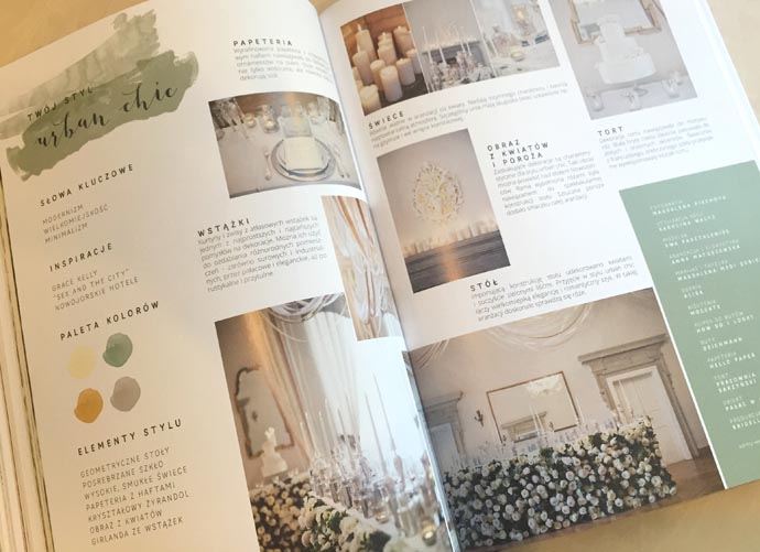 17 stylizacji i pięknych sesji zdjęciowych, świetna jakość, dobry smak i ogrom, naprawdę ogrom włożonej pracy robią wrażenie. Na nas – ogromne, bo z jednej strony wyobrażamy sobie z perspektywy naszej pracy jakie to przedsięwzięcie organizacyjne, i to kierowane przez trzy panie – autorkę koncepcji książki Bridelle Style Karolinę Walttz, fotografkę Magdalenę Piechotę i florystkę Annę Matuszewską. Czuć fascynacje amerykańskim stylem, a o jakości niech świadczy zdanie panny młodej, która po pierwszym przejrzeniu książki spytała: – To amerykański przedruk?