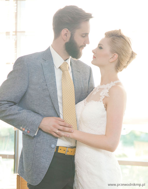Lato na okładce? Już się robi. Koronkowa suknia z dekoltem w stylu hiszpańskim, delikatna srebrna biżuteria, energetyczny bukiet i subtelny makijaż panny młodej plus pan młody hipster, szelki, mucha, casualowe spodnie (nie umiemy precyzyjnie określić ich koloru). Hmmm… tego jeszcze nie praktykowaliśmy.