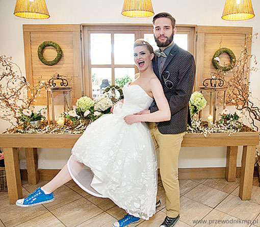 Żółty, błękit, pastele; pan młody jako hipster w trampkach, panna młoda towarzysząca mu w sesji na korcie tenisowym, stylowe dodatki i letni luz – ale o tym wcieleniu w kolejnym artykule…