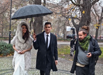 Jest PLAN. I co? I zanim w piękne słoneczne popołudnie wybieramy się w plener, aura robi psikusa i zaczyna zacinać pierwszy w tym roku śnieg. Z deszczem. Była to więc najkrótsza sesja okładkowa w plenerze w historii Przewodnika. Dzięki przytomności Mai Lewickiej (której dziękuję przeogromnie za pomoc w wielu innych sprawach), mieliśmy futerko i parasol. Wcześniej zaplanowane, ale jako rekwizyty…