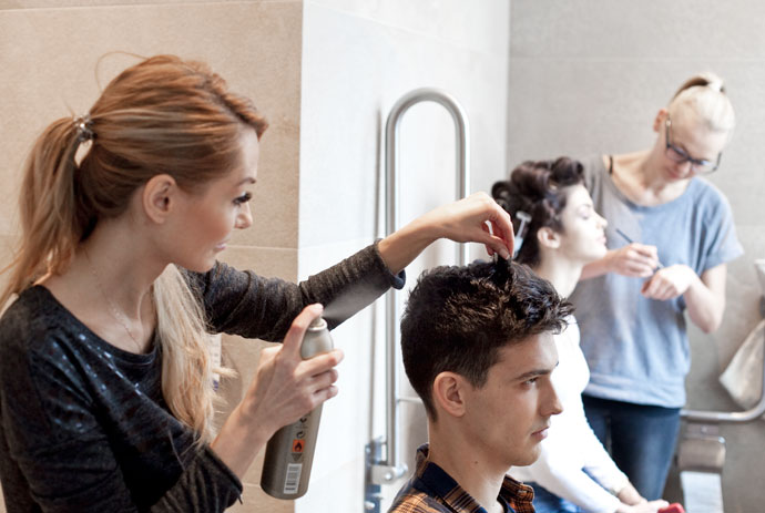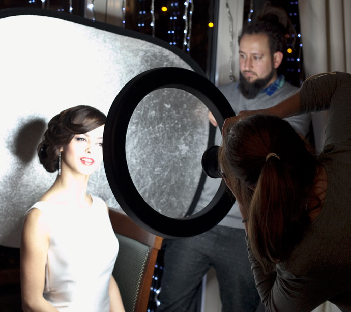 I kolejne wcielenie, ale cóż, światło się zmienia, szczęście, że przeszklona sala daje takie możliwości zagrania sztucznym oświetleniem. Pomysł pożyczenia z Costy świetlnych sznurów okazał się strzałem w dziesiątkę. I już, już mieliśmy kończyć, gdy Aneta „ekspresowo” wyczarowała Natalii kolejną fryzurę, go której koniecznie trzeba było włożyć trzecią sukienkę i uwiecznić w ciepłym świetle hotelowego pokoiku. I to właśnie gra światłem okazała się kluczowa w uzyskaniu klimatu sesji, ale o tym przeczytacie wkrótce w osobnym artykule.