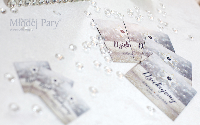 Zaproszenia i podziękowania dla gości w postaci magnesów również nawiązują do konwencji movie-glamour.