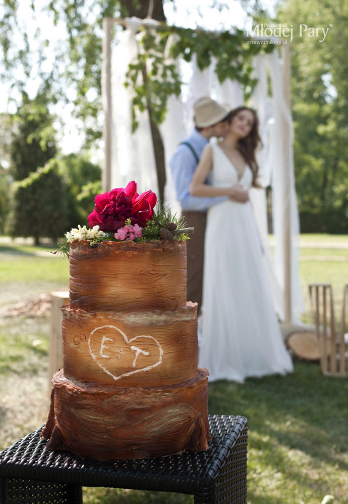Rustykalne detale uzupełnia tort od Bajkowych Tortów, który uznaliśmy już jakiś czas temu za jeden ze sztandarowych w tym stylu. Udało się wyprosić na sesję…
