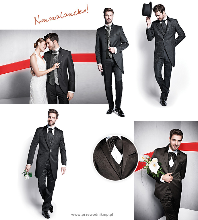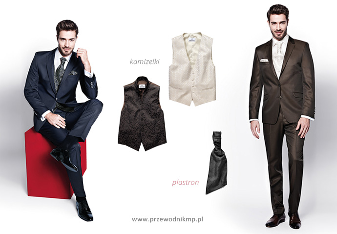 W tym sezonie ślubnym strój męski łączy w sobie elegancję z nutą nonszalancji. Fasony są nadal slimowane, jednak kroje swobodniejsze. Kolory i fasony garniturów oraz akcesoria powinny być spójne w najdrobniejszych szczegółach. Najwyższej jakości materiały są miękkie, lejące i połyskliwe.