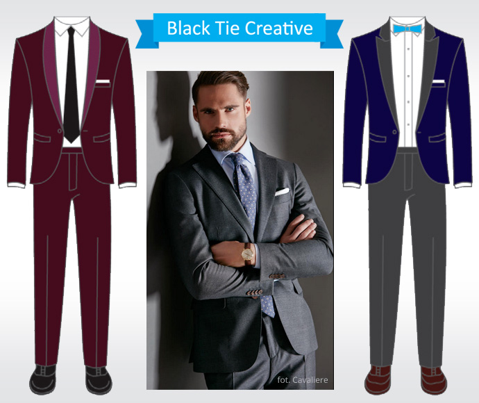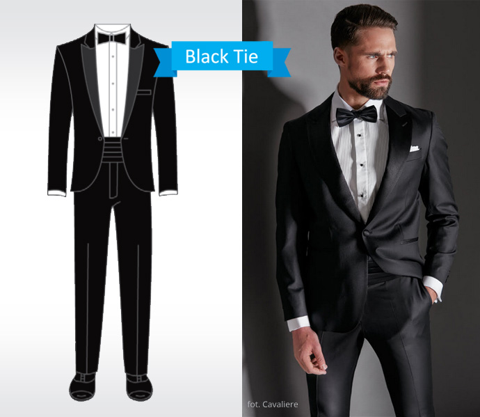 Na strój określany mianem Black Tie składają się: czarna muszka, smoking, biała koszula, lakierki i opcjonalnie pas smokingowy.