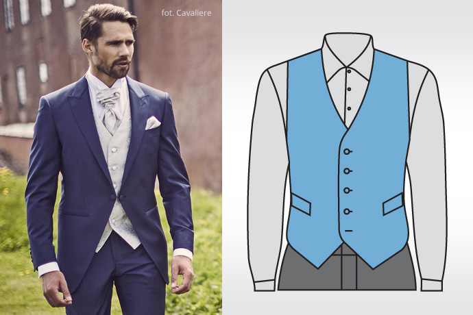 Ramiona męskiej kamizelki powinny zawsze przylegać do ciała. Jeśli wkładasz kamizelkę pod marynarkę, kamizelka ma zakrywać koszulę nad paskiem spodni. W kamizelce jednorzędowej zostawiamy rozpięty dolny guzik. W dwurzędowej wszystkie guziki są zapięte.