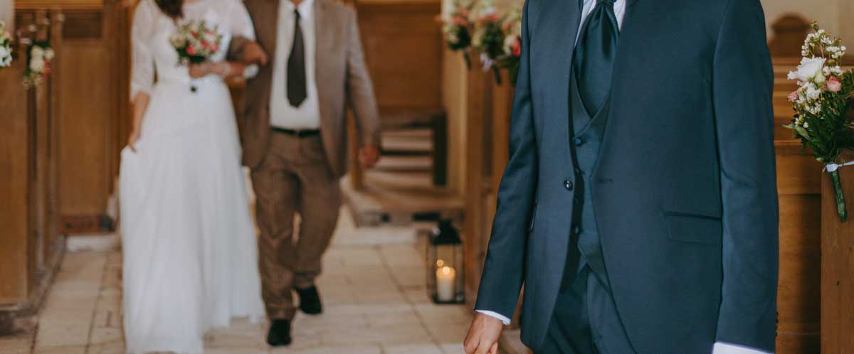 Jeśli mówimy o sytuacjach formalnych, a do nich należy ślub – nie zapinamy marynarki w garniturze trzyczęściowym, w którym pod marynarką jest kamizelka.