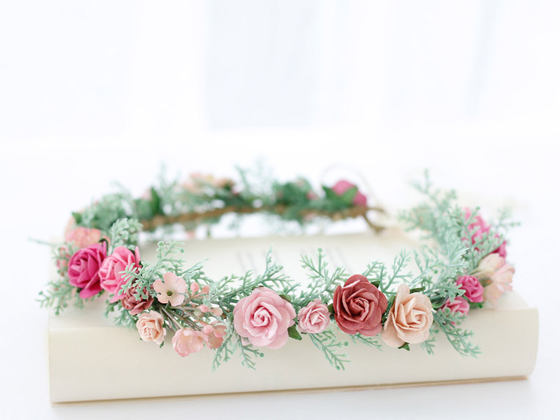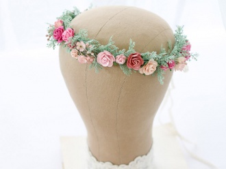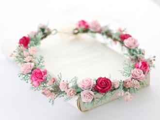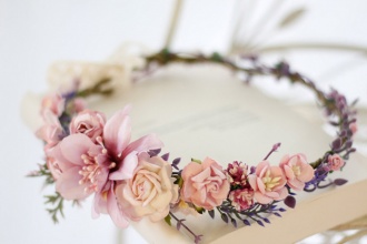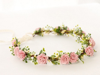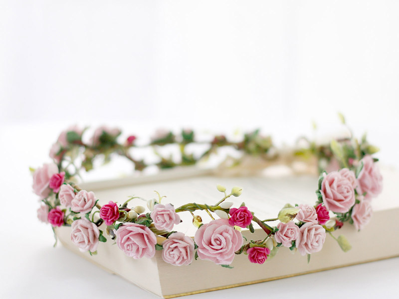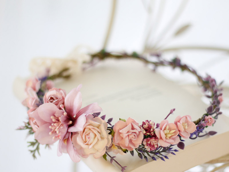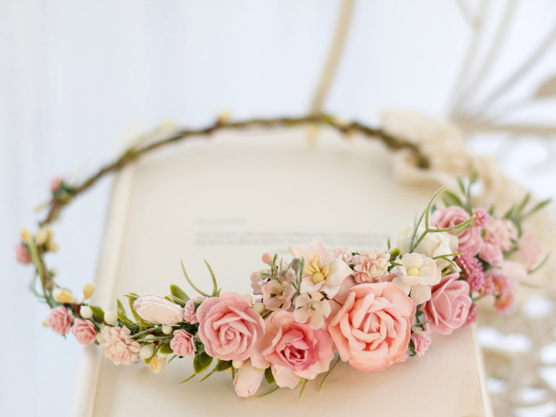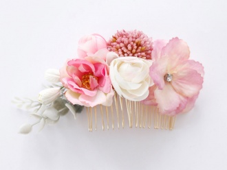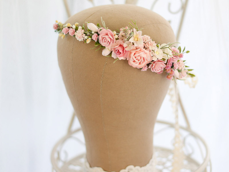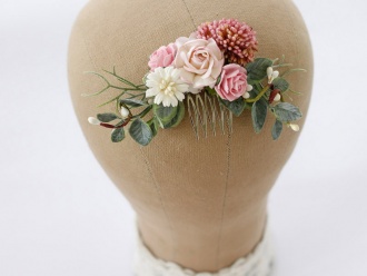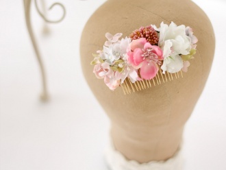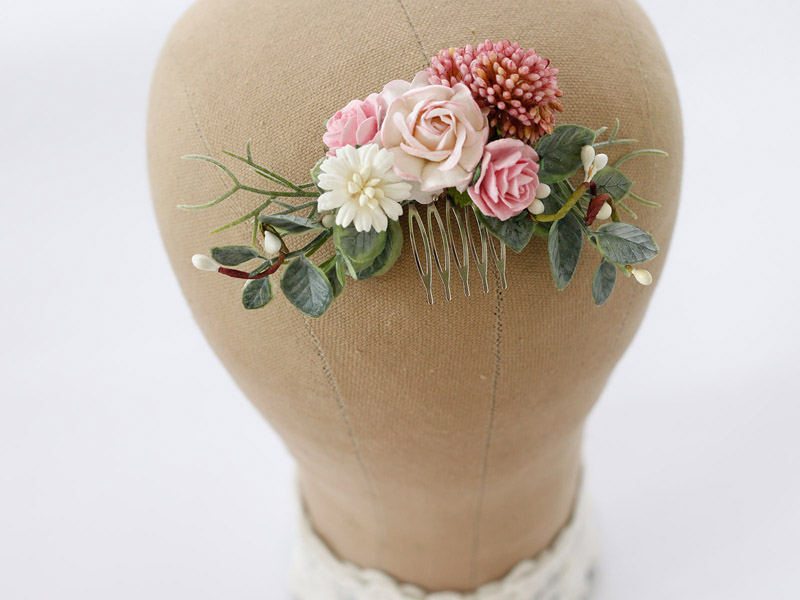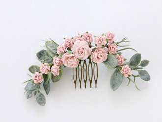 Kwiatowe grzebyki i wianki w pastelowym różu