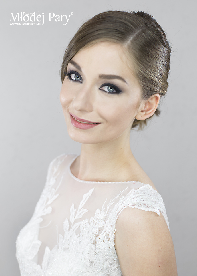 To fantastyczna alternatywa dla wszechobecnej i mdlącej niektórych bieli, pasteli, niewinności i romantyczności. Taki makijaż oka jest bardzo zmysłowy, na ogół kojarzony z wieczorowym – ale w połączeniu z delikatnym kolorem ust pasuje również do ślubnych stylizacji.Trzeba jedynie pamiętać, że tak pokreślone oko to wyraźny akcent i niekoniecznie lubi konkurencję glamourowych fryzur, krzykliwych ust czy rzucającej się w oczy biżuterii i dodatków. Natomiast zharmonizowany z gładkim uczesaniem i ustami w kolorze zbliżonym do naturalnego nie grozi przesadą, nawet w towarzystwie całkiem pokaźnej sztucznej rzęsy.