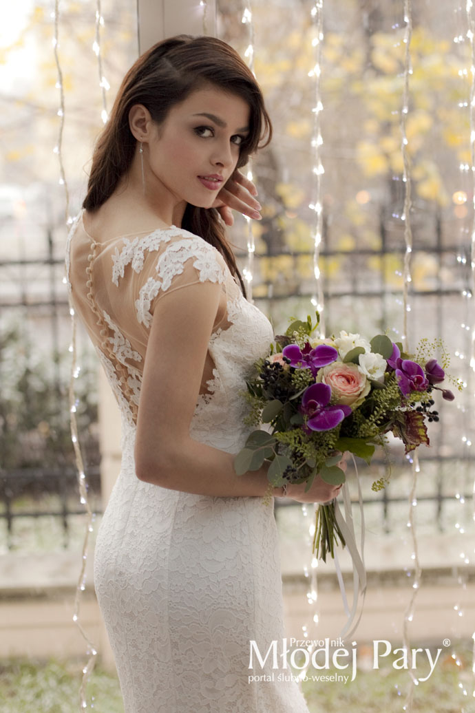 Suknia illusion back i piękny bukiet panny młodej