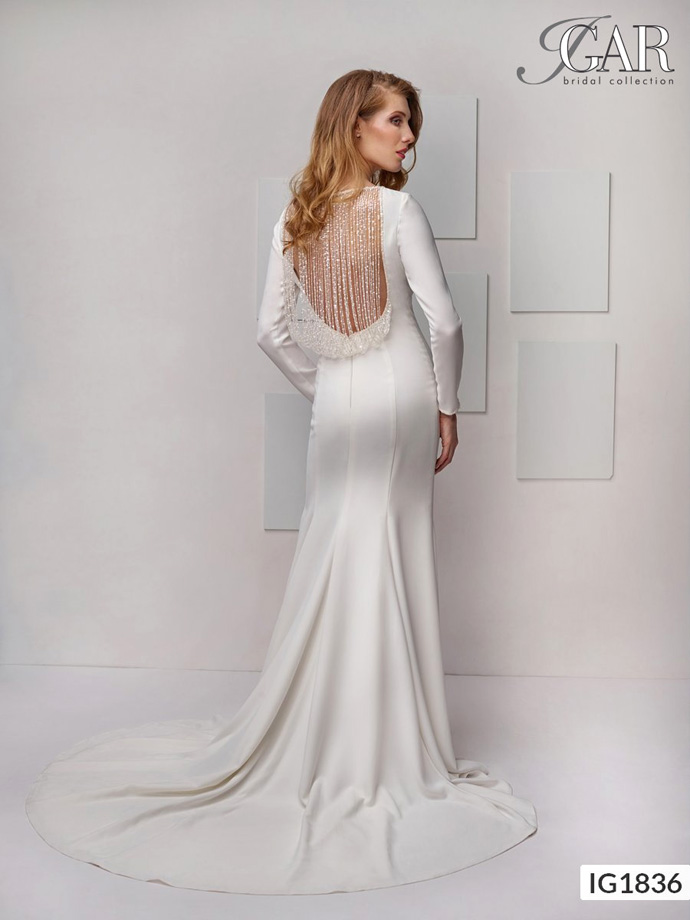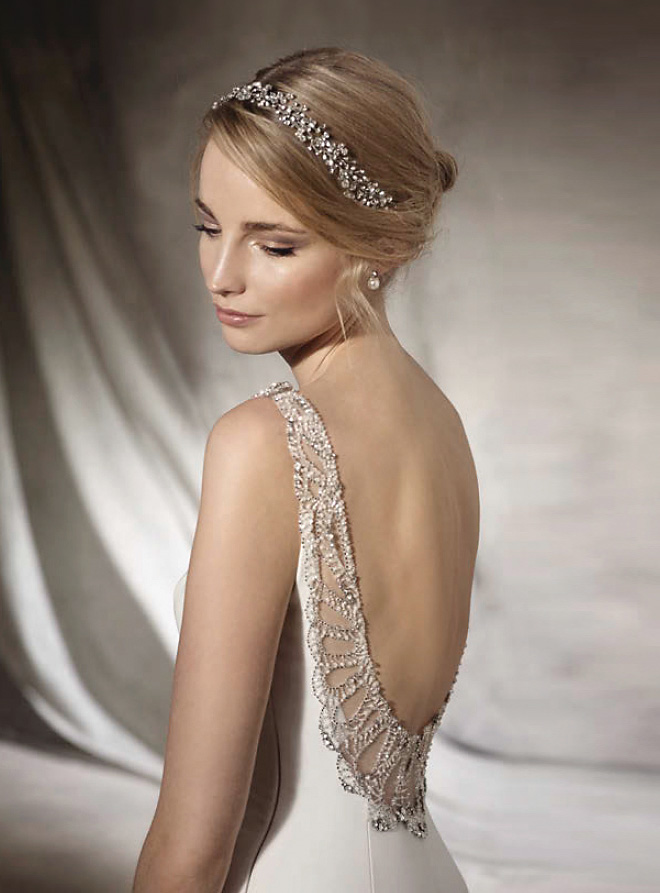 Odkryte plecy z biżuteryjnym haftem i perełkami