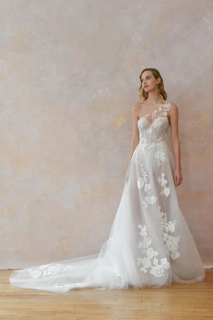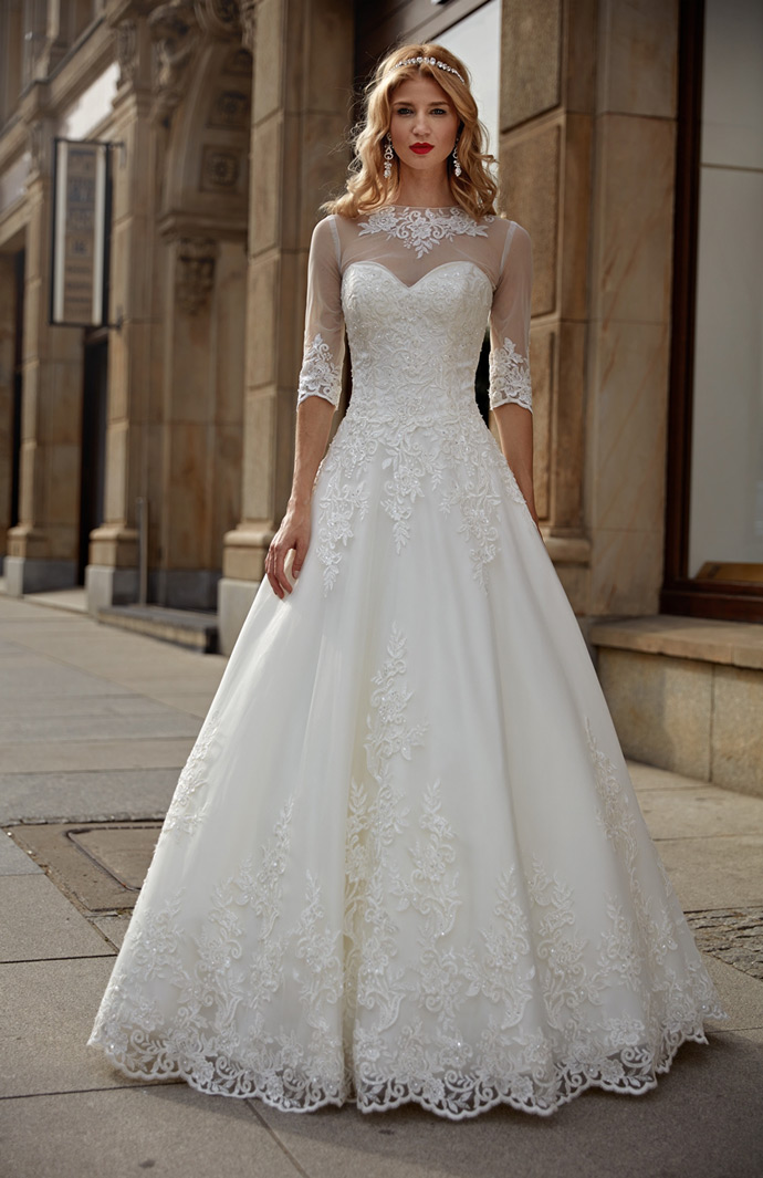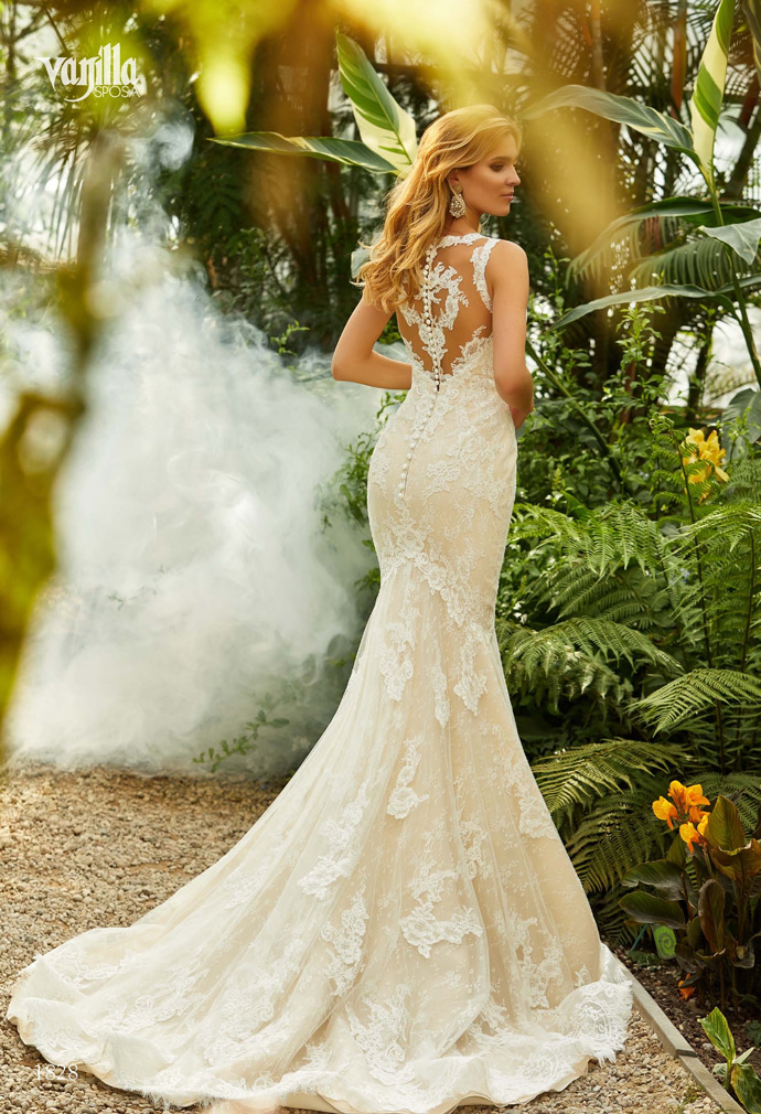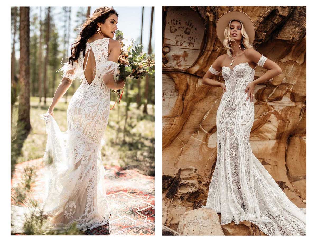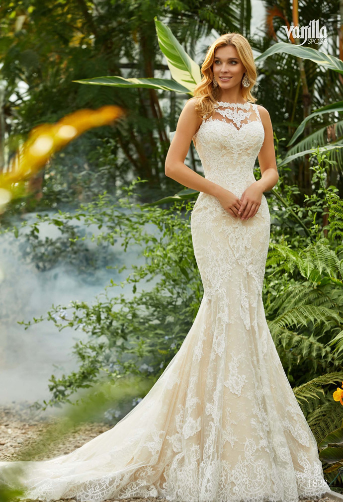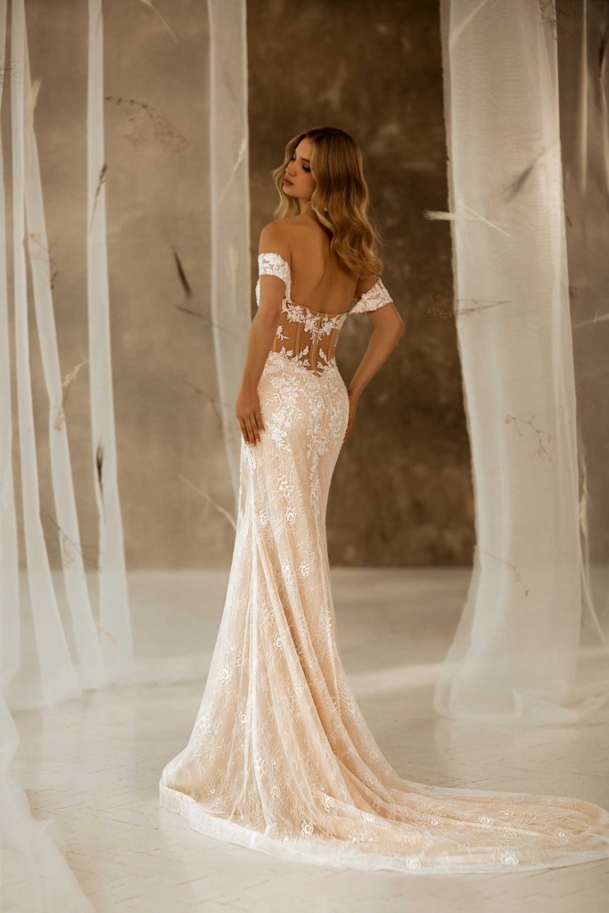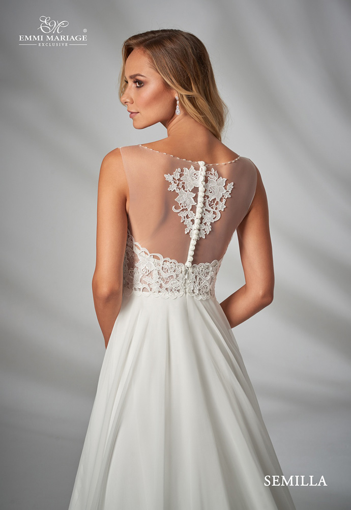 Po kilku sezonach triumfu, sukienki z iluzorycznym efektem koronki na ciele straciły na popularności na rzecz innych fasonów. W jednym z nurtów mają się wciąż dobrze i zachwycają również na plecach panien młodych, w obszarze dekoltu, rąk i ramion. Koronkowe aplikacje mogą być minimalistyczne lub przybierać bardziej wymyślne formy.