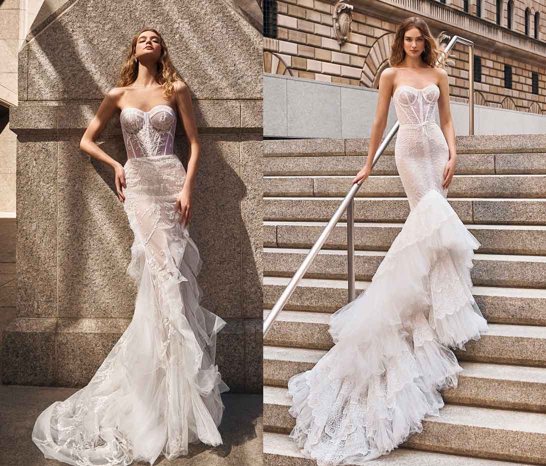 Z pewnością widziałyście już w najnowszych kolekcjach i pokazach ciekawe, kreatywne rozwiązania górnych partii sukien ślubnych. Tiule, koronki, ciekawe wycięcia na plecach… można się rozmarzyć! W wielu kolekcjach pojawiają się koronkowe i tiulowe wykończenia, które są główną ozdobą sukien. Coraz większe wycięcia na plecach i nowe rozwiązania w konstrukcjach sukien, to wyraźne tentencje także na przyszły sezon.