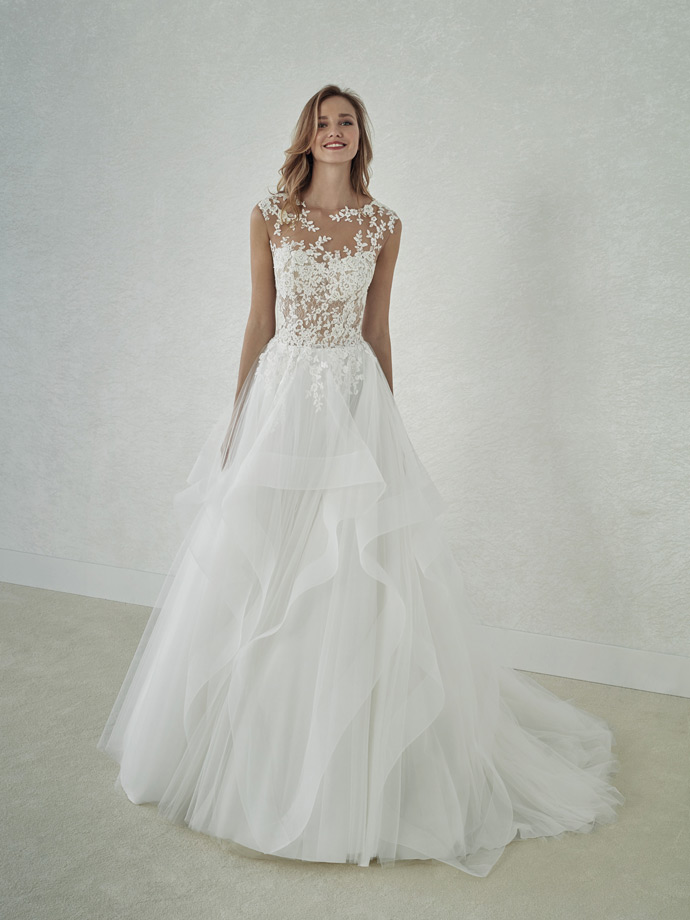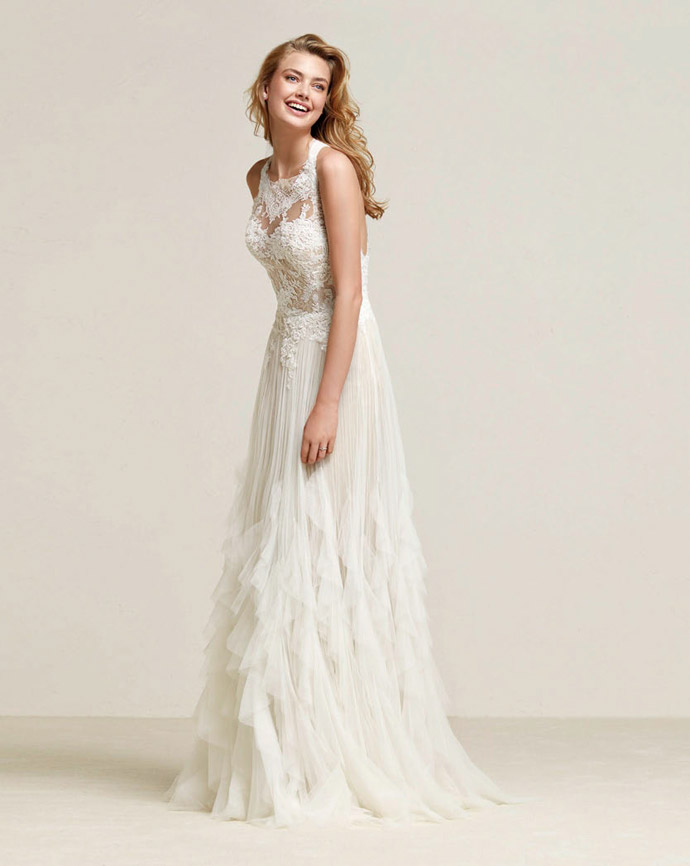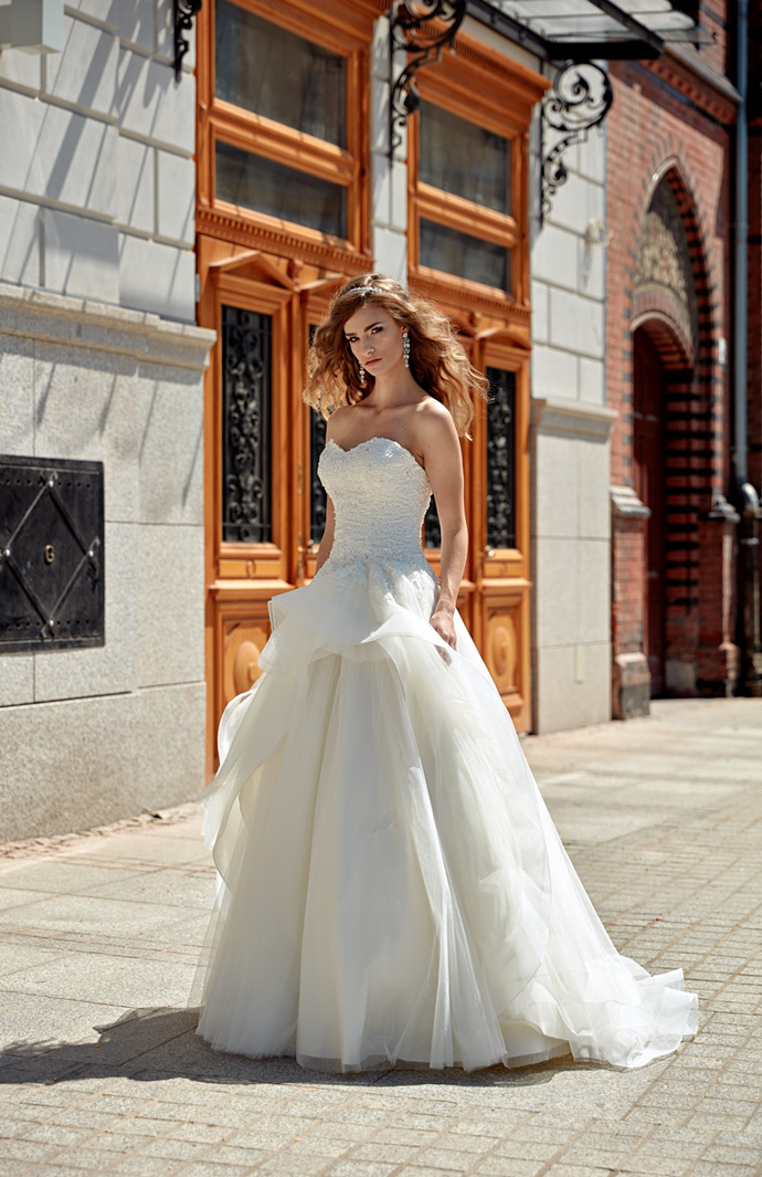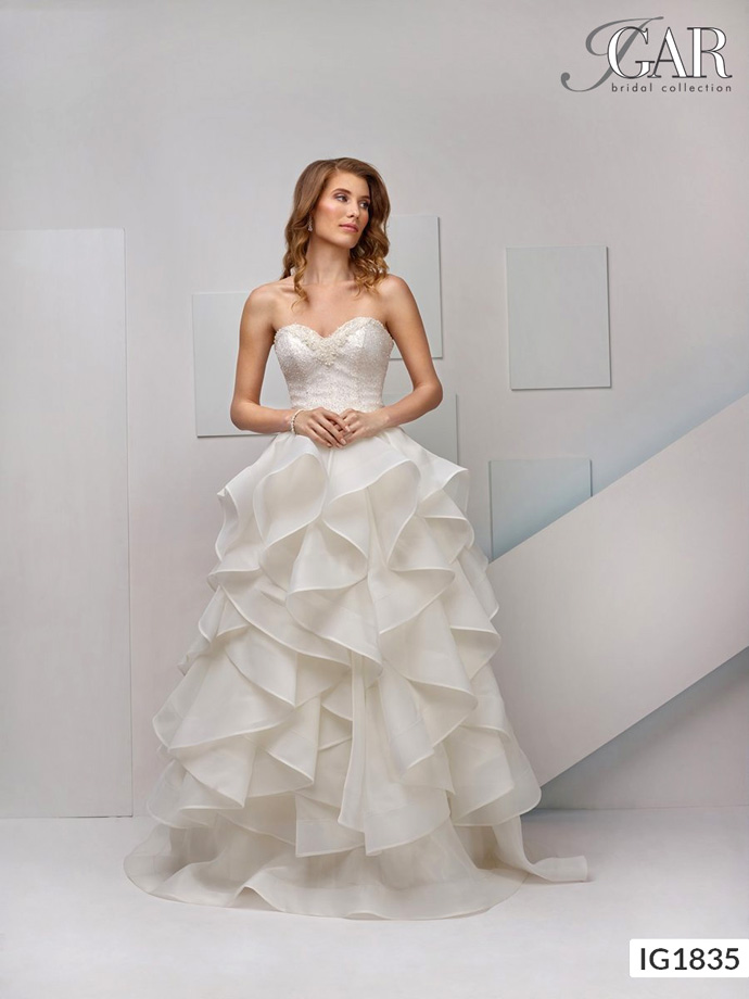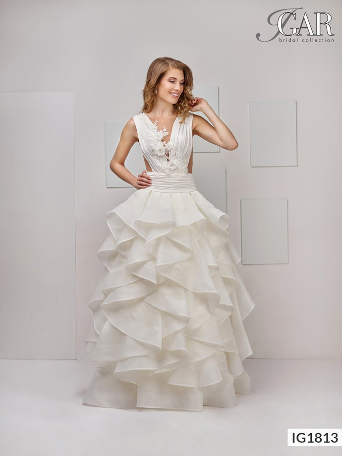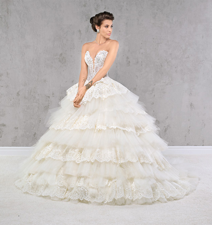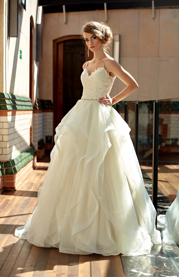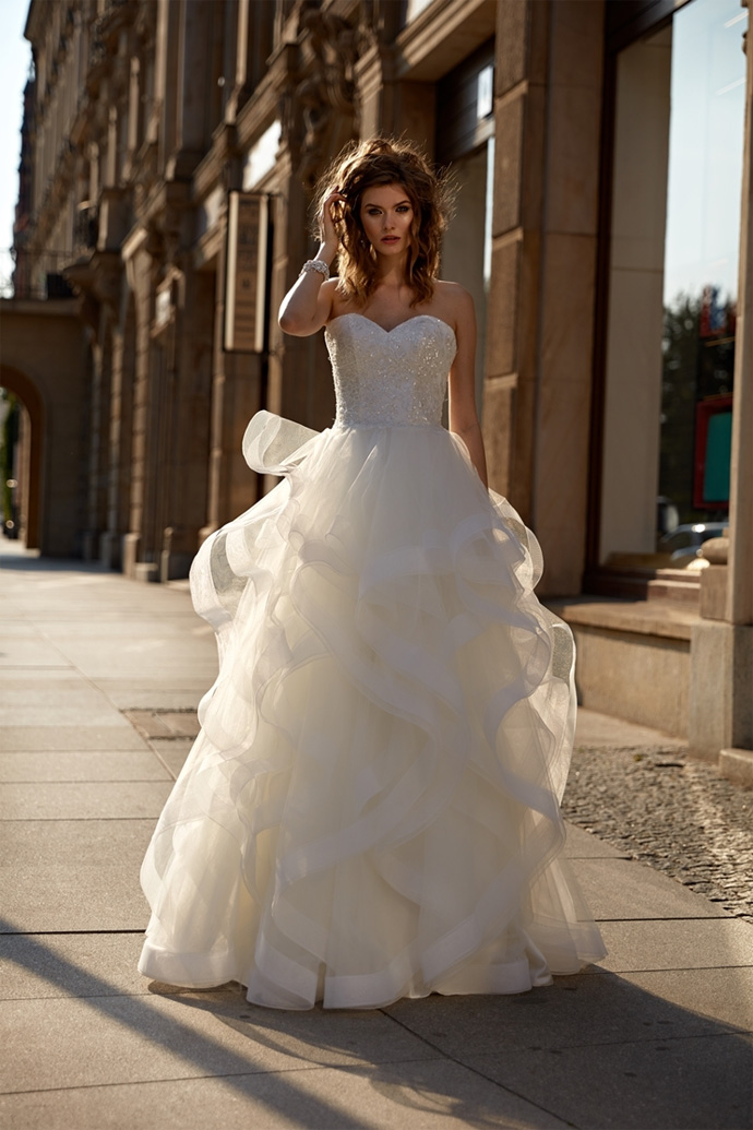 Gorącym trendem tego sezonu są suknie ślubne z falbanami. Zauważyliśmy je już w ubiegłorocznych propozycjach, lecz dopiero w kolekcjach sukien ślubnych 2018 można znaleźć większy wybór. Przynajmniej tych do kupienia u nas, i takie właśnie poniżej możecie znaleźć.