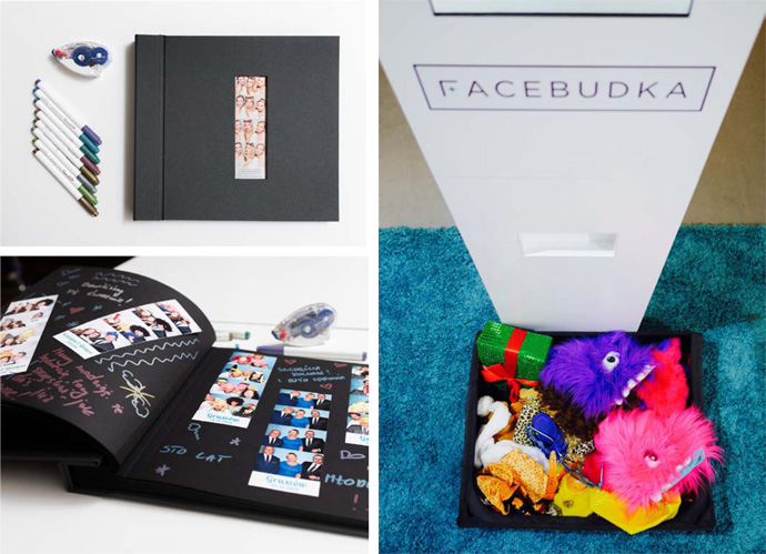 – To banalnie proste, dlatego zabawa jest tak przyjemna – mówi Przemysław Banaś, pomysłodawca wrocławskiej Facebudki. Dostarczamy fotobudkę na wesele, a ona wykonuje i natychmiast drukuje zdjęcia w wyjątkowej jakości i trwałości. Rolą gości jest wybranie odpowiedniej pozy, towarzysza zdjęcia i odrobina kreatywności, bo do dyspozycji oddajemy kufer pełen gadżetów: masek, peruk, okularów, wąsów, kapeluszy, opasek oraz różnokolorowe tła. Im ciekawsza stylizacja, tym więcej uśmiechu i cenniejsza pamiątka. Fotografie drukowane są w dwóch kopiach – jedną z nich goście wklejają do księgi pamiątkowej, która jest kolekcją weselnych wspomnień dla młodej pary, drugą zabierają ze sobą, by po latach spojrzeć na nią z uśmiechem. Co więcej, na zdjęciach możemy umieścić podziękowania dla gości, datę ślubu czy imiona nowożeńców.