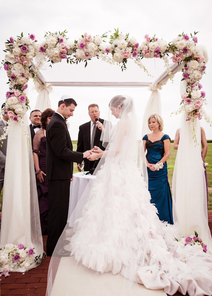 Źródłem jest żydowska tradycja, w której młoda para składa sobie przysięgę małżeńską pod baldachimem zwanym chuppah (w dosłownym tłumaczeniu koc i ochrona). Rozciągnięta na czterech filarach tkanina, elementy modlitewne, czasem też ulubione przedmioty narzeczonych, składają się na symboliczną oprawę zaślubin w plenerze, jak i w środku. Konstrukcja ta jest bardzo ważna w ślubach żydowskich i symbolizuje pierwszy wspólny dom, namiot Abrahama, gościnność patriarchy i boski autorytet. Tu urywam wyjaśnienie, bo o tradycji ślubu żydowskiego innym razem:)