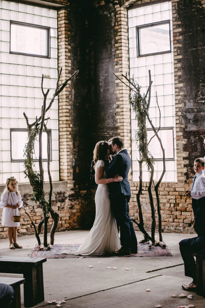 Ślub industrialny tez może coś „wyciągnąć” z tradycji i w gustowny sposób podkreślić symbolikę houppa de mariage.