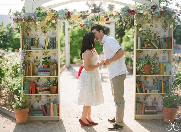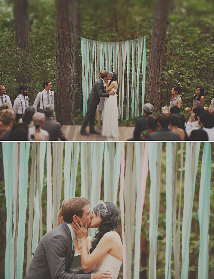 Pocałunek pod łukiem ślubnym przynosi oczywiście szczęście, a dekoracje z origami czy papierowych pasków nie muszą odbierać powagi ceremonii, jeśli trafiło na parę młodą z poczuciem humoru…