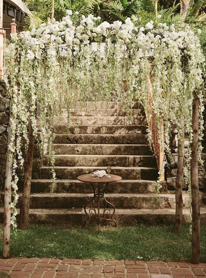 Wykorzystanie naturalnej przestrzeni do udekorowania bogatego lub minimalistycznego monochromatycznego łuku ślubnego: