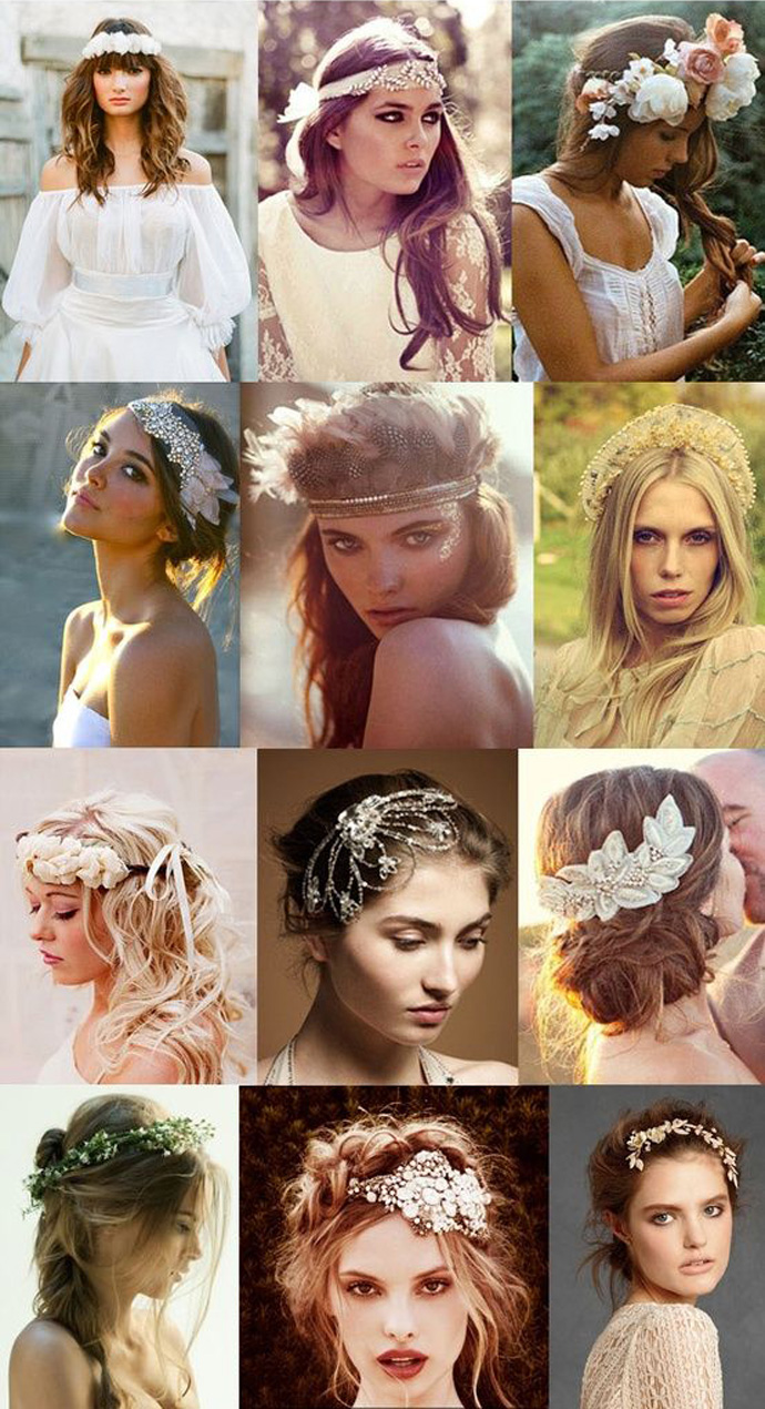 - Rozpuszczone włosy w „niedbałe” fale bądź upięte luźno warkocze, wpięte kwiaty, opaski, wianki, piórka i ozdoby w stylu hippie.