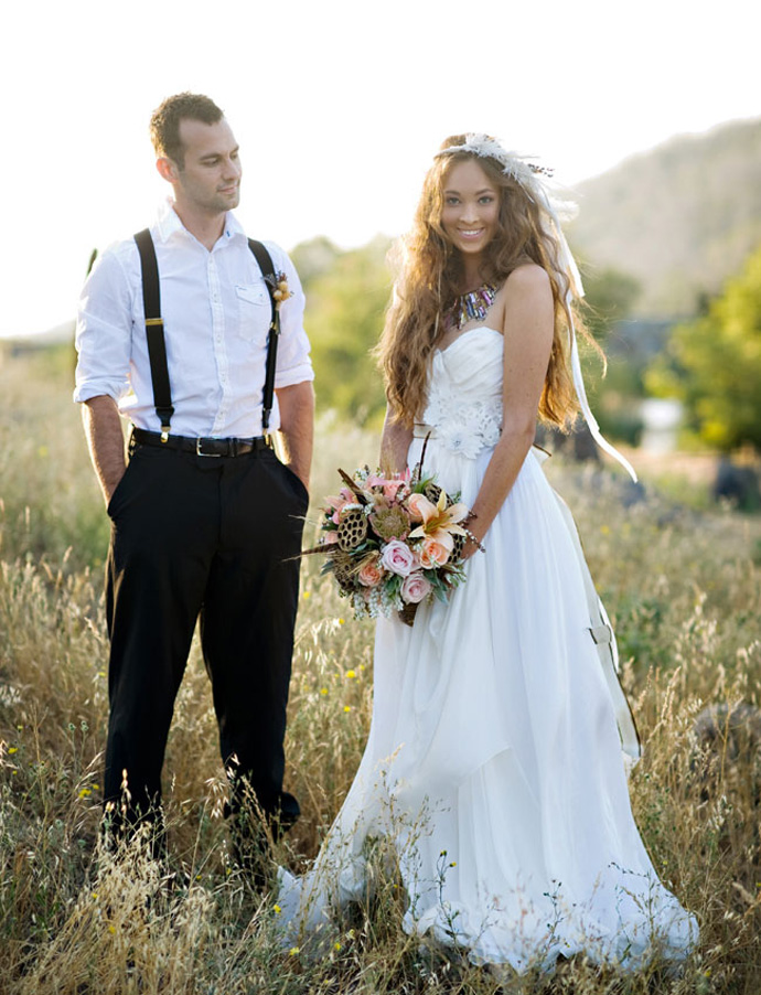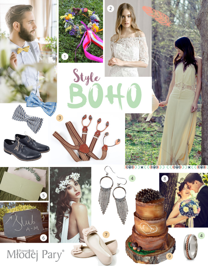 Nie trzeba dodawać, że pan młody w stylu boho zamiast smokingu czy fraka założy raczej szelki, kolorową muchę, garnitur – i to niekoniecznie od pary? Lub zamiast śnieżnobiałej – pastelową koszulę, a marynarkę najczęściej odwiesi podczas przyjęcia na krzesło.