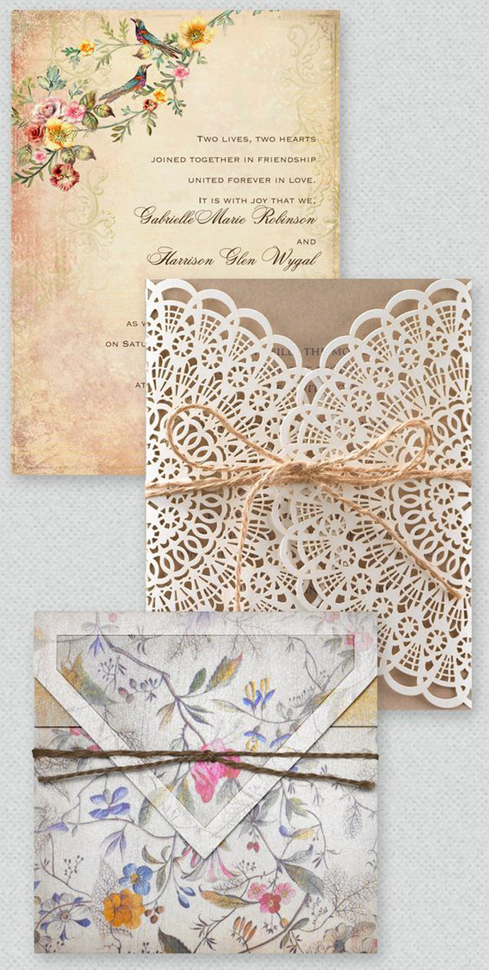 - Detale i zaproszenia robione ręcznie (lub imitujące ręczną robotę), nawiązujące do grafiki lat 70-tych, na ekologicznym papierze, z dodatkiem koronek, wstążeczek, piór.