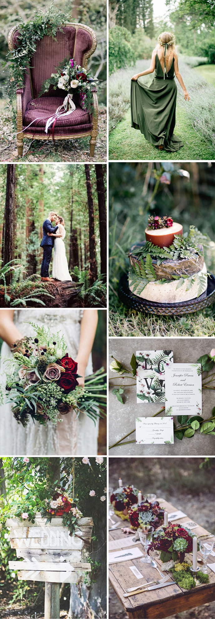 Umówmy się, że w naszych realiach niewiele osób weźmie na siebie formalności w nadleśnictwie, logistykę wyprawy oraz ryzyko kapryśnej aury i wraz ze ślubnym orszakiem wyjedzie na leśną polanę czy w głąb lasu, by tam ustawić ślubny ołtarz, krzesła, dekoracje… Z drugiej strony udekorowanie leśnej przestrzeni nie jest trudne, bo sama w sobie przyroda jest pięknym tłem dla ceremonii. Jeśli jednak wybierzecie na ślub czy wesele miejsce z potencjałem położone wśród zieleni, na skraju lasu, zagajnika w otoczeniu bogatej przyrody, nawet w przestrzeni miejskiej, śmiało możecie zdecydować się na motyw leśnego wesela dzięki dekoracjom i detalom charakterystycznym dla tego klimatu. Nawiązanie nie musi być wprost, możecie wybrać detale zgodnie z upodobaniem i porą roku, z której dobrodziejstw można i trzeba czerpać.