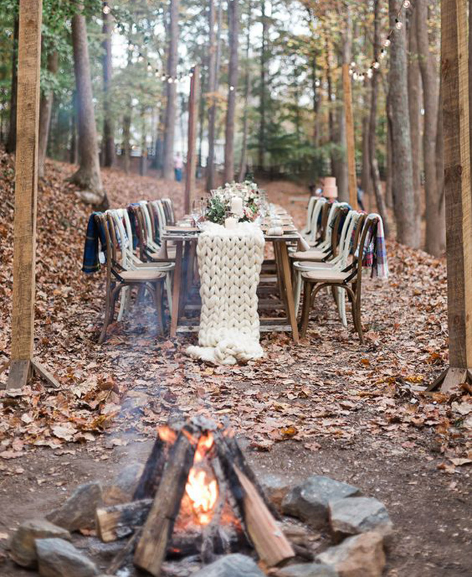 Pożądane motywy: mnóstwo “zieleniny”, którą można rozświetlić bielą kwiatów i girland, ożywić fuksją, bordo lub seledynem; lampiony, sznury świetlne, drewniane pieńki, girlandy, kamienne donice, szyszki, kasztany, orzechy, sukulenty, leśna kora, laski cynamonu, miedziane misy, srebrne i szklane świeczniki.