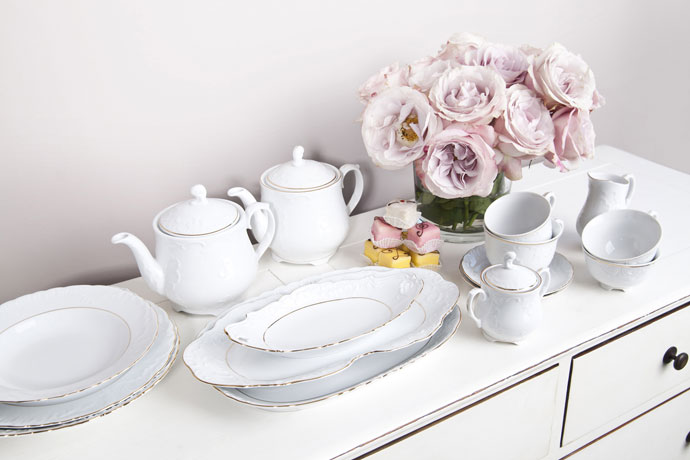 - Zastawa stołowa z zestawem eleganckich sztućców,