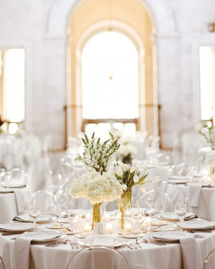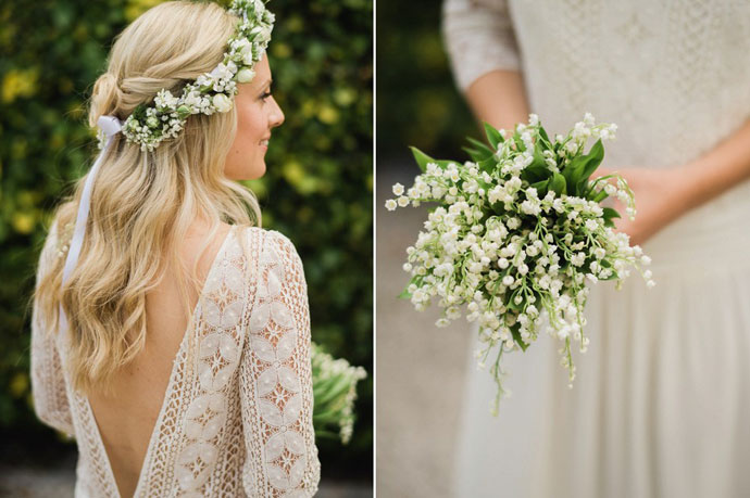 Śluby w maju nie cieszą się takim wzięciem (wciąż pokutuje brak „r” w nazwie miesiąca?), jednak dzięki dobrodziejstwom wiosny mają niepowtarzalne możliwości florystyczne. Główną rolę grają oczywiście konwalie. Konwaliowy sezon jest krótki, więc grzechem byłoby pominięcie tak wyjątkowych sezonowych kwiatów w ślubnych inspiracjach.