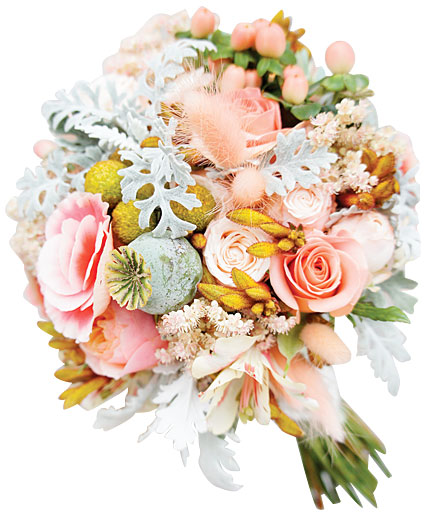 Doceńcie również sezonowe kwiaty ogrodowe oraz polne, byliny, sukulenty i trawy. Ich dodatek nada bukietowi charakteru i podkreśli oryginalną stylizację dekoracji. Pięknie zaprezentują się chabry, słoneczniki czy konwalie – byle pomyśleć o tym wcześniej i trafić w sezon.