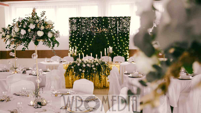 Firma dekoratorska WROMEDIA jest jedną z najbardziej prestiżowych, obiecujących oraz dobrze wyposażonych firm na Dolnym Śląsku. Zajmują się dekoracją eventów, uroczystości ślubnych, wszelkich uroczystości rodzinnych oraz eventów medialnych. Realizacje marki WROMEDIA można oglądać wielokrotnie w gazetach, magazynach ślubnych oraz na portalach internetowych. Naszą Ekspertkę od dekoracji Martynę Gabriel możecie również oglądać w Dzień Dobry TVN w emitowanych co miesiąc odcinkach dekoracyjnych. W swojej ofercie prezentują wiele możliwości dekoracji sal weselnych, kościołów, samochodu Pary Młodej oraz wszelkiej florystyki ślubnej; wiązanki ślubne, kompozycje na stoły gości, butonierki, wianki, flowerboxy, korsarze kwiatowe; ciężki dym, dekoracje światłem oraz wiele innych. W skład oferty wchodzi wiele opcji dekoracyjnych, dzięki którym każda Para Młoda znajdzie coś dla siebie. Dekoracje w stylu rustykalnym, glamour, egzotycznym, zimowym. Bogate dekoracje kościołów oraz sal weselnych w wybranym stylu; dywany z trawy, białe, granatowe, czerwony, fuksja. Zestawy ślubne złote, białe pikowane, krzesła chiavari, piękne latarenki, drzewka dekoracyjne, tabliczki z hymnem o miłości oraz przysięgą, anioły dekoracyjne, ścinaka pikowana, ścianka bukszpanowa, ścianka podświetlana, kurtyny świetlne, łuki egzotyczne, napisy LOVE żarówkowe, napisy LOVE ażurowe, ciężki dym, dekoracja światłem, szklane wazony, metalowe wazony złote, srebrne kryształowe, bogaty wybór świeczników, napisy na ściankę za Parą Młodą, bieżniki cekinowe, podtalerze dekoracyjne, pokrowce na krzesła, wykazy gości wraz z numeracją stołów, dekoracje słodkiego stołu, dekoracje wiejskiego stołu, dekoracje ogrodów weselnych oraz eventowych oraz wiele innych! Nasi konsultanci ślubni z firmy WROMEDIA doradzą Państwu w każdym szczególe aby ten dzień był dla Państwa jeszcze bardziej wyjątkowy! Na samym początku projektowania Państwa indywidualnej dekoracji, dobieramy właściwą paletę barw oraz ustalamy wszelkie szczegóły, dodatki, ponieważ to właśnie one zaważą na efekcie końcowym naszej pracy. Następnie uzgadniamy wielkość, ilość kompozycji kwiatowych bądź innych na stołach gości, kwiaty zawarte w kompozycjach oraz wszelkie dekoracje, które będą widniały na stołach gości. Dopasowujemy ściankę dekoracyjną, która usytuowana jest za stołem prezydialnym Państwa Młodych oraz kompozycję i dodatki na stole. Ustalamy z Państwem styl wesela, doradzamy w wyborze dekoracji, komponujemy dla Państwa przepiękną florystykę ślubną.