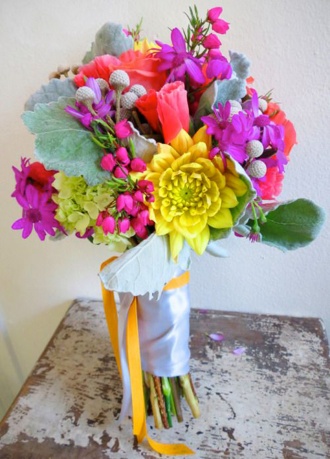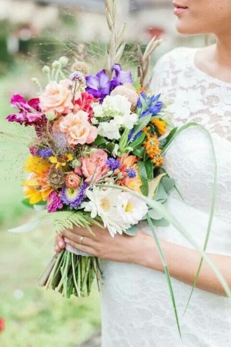 Kolorowe bukiety ślubne