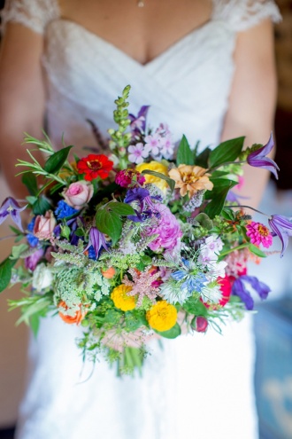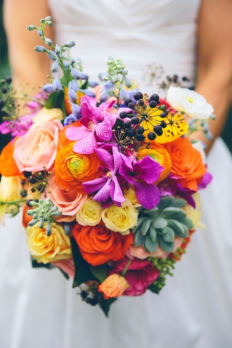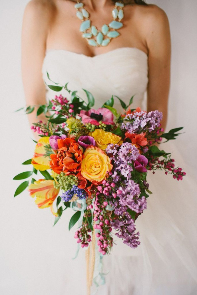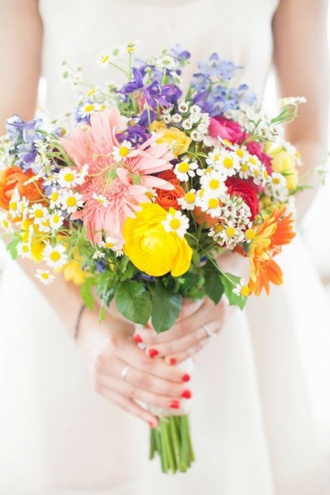 Nie ma problemu. Multikolorowe bukiety ślubne tryskają energią i świetnie sprawdzą się dla kobiet, które na co dzień lubią bawić się kolorami.