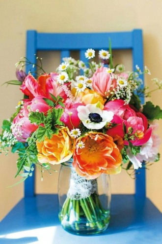 Kolor dodaje animuszu. Przy czym bukiet może składać się z większości kwiatów kontrastujących lub wrzuconych tylko kilku mocnych akcentów.