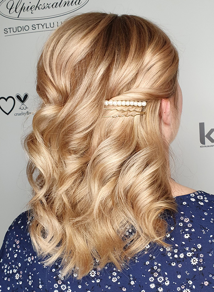 Przyszłe panny Młode często proszą o delikatne, naturalnie wyglądające fale. Fryzurę mogą dopełnić ozdobne spinki, opaski, grzebyki czy żywe kwiaty. Zależy to od stylizacji i powinno współgrać z charakterem sukni ślubnej oraz dodatków.