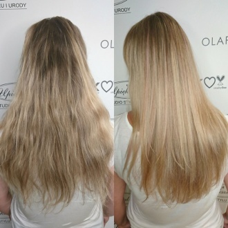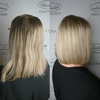 Zakładamy, że przychodzi kobieta świadoma możliwości i – co tu kryć – finansów, i że wie, że zadbanie o włosy przed ślubem wiąże się przede wszystkim z ich odżywieniem, dopieszczeniem, przycięciem /ścięciem, koloryzacją. Włosy muszą mieć swój blask, zdrowy wygląd. Estetyczne rozświetlenie – czy to ombre, sombre czy też jednolity świetlisty odcień.