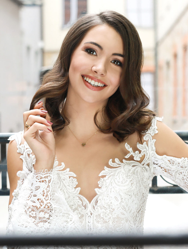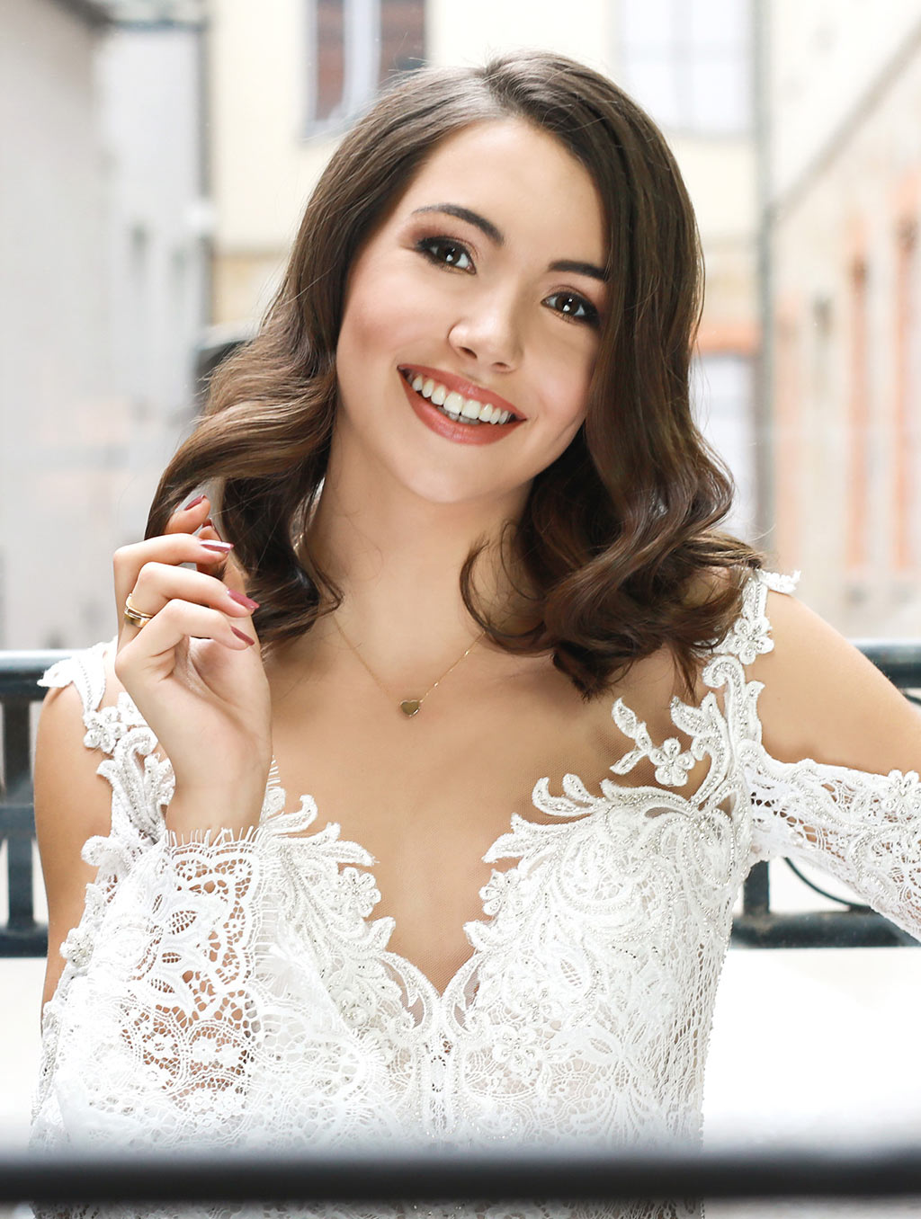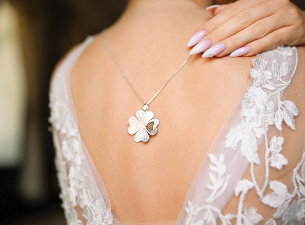 W celebrytkach i wisiorkach najczęściej mniej znaczy więcej. Delikatna złota kuleczka na cieniutkim łańcuszku czy złote serduszko mogą być klasyczną i ponadczasową ozdobą szyi panny młodej. Modne i zmysłowe są także połączenia kilku motywów i zawieszek skomponowanych w jedną całość.