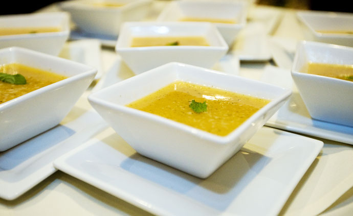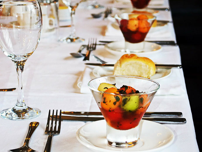 Po czwarte – zwróćcie uwagę na porę roku i temperaturę, która może jej towarzyszyć. Latem idealne będą lekkie kremy warzywne, zimą lepiej sprawdzi się rozgrzewający rosół. W cieplejszych miesiącach lepiej też uważać na dania takie jak galaretki czy tatar. Upewnijcie się, że dania będą podawane na małych półmiskach, a obsługa będzie je sukcesywnie uzupełniać.