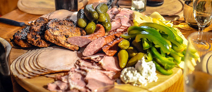 - płyta wędlin: szynka, polędwica, kiełbasy suche