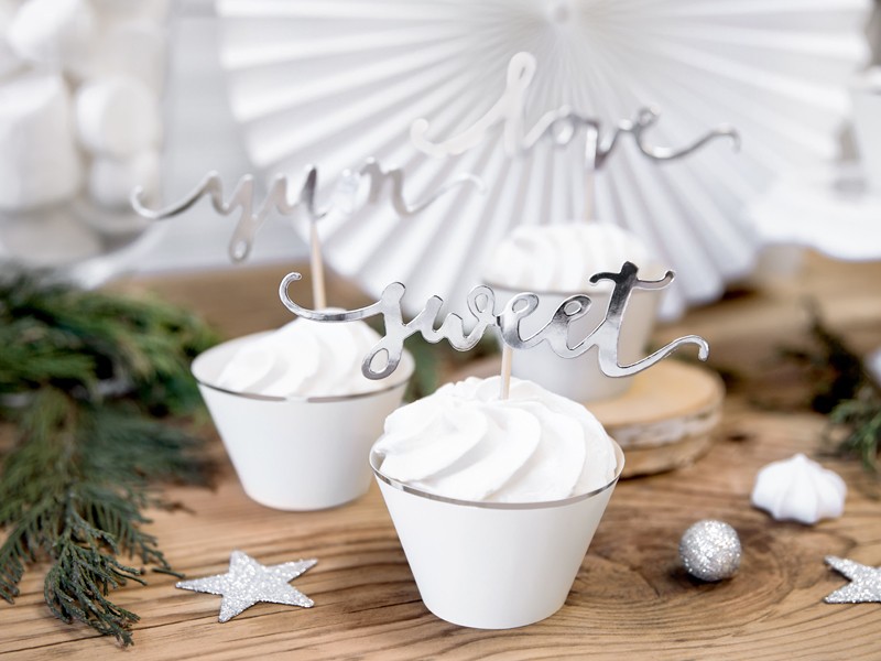 Babeczki zamiast klasycznego tortu ślubnego to jeden z popularnych trendów na przyjęciach. Krojenie tortu to przecież zwyczaj, ale co jeśli za tortem się nie przepada? Wówczas można zamówić babeczki ułożone w piramidę na specjalnych podtalerzach. Kompromisem jest niewielki tort na górze i babeczki wypełniające poniższe piętra. Wówczas zachowuje się symboliczną tradycję krojenia tortu i jednocześnie uszczęśliwia zwolenników babeczek. Na babeczkach toppery wyglądają równie gustownie.